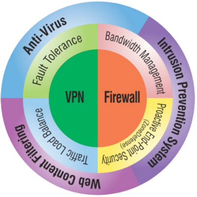 O Firewall com camadas adicionais de proteção: AV/Anti-Malware, WebFilter, Anti-Spam, IPS (Prevenção de Invasões) e DLP (Prevenção de Roubo de Dados) — tudo integrado e gerenciado em uma única solução.
